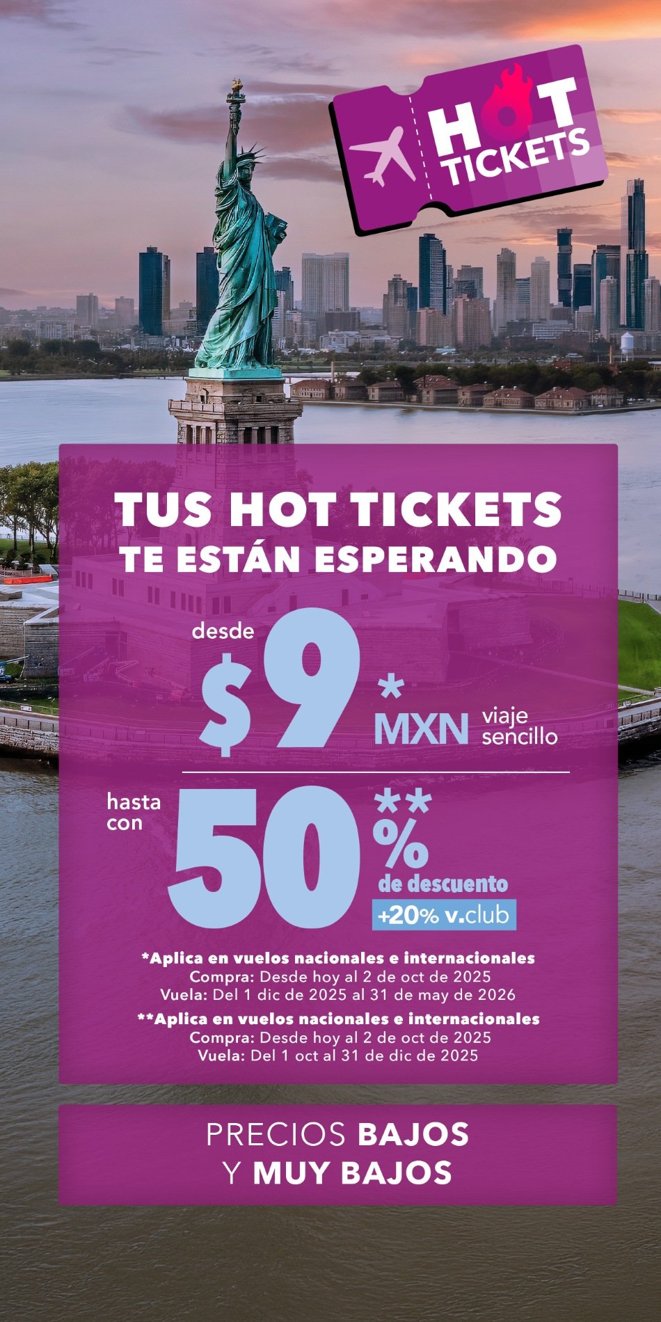 Como sucede en Hot Travel, con Hot Tickets de Volaris, tienes la oportunidad de viajar con hasta un x% de descuento en rutas seleccionadas. Es el momento ideal para elegir tu próximo destino y vivir experiencias únicas, ya sea en playas paradisíacas, ciudades llenas de historia o metrópolis vibrantes. Aquí te compartimos algunos de los lugares más buscados en México y Estados Unidos para que reserves ahora mismo.