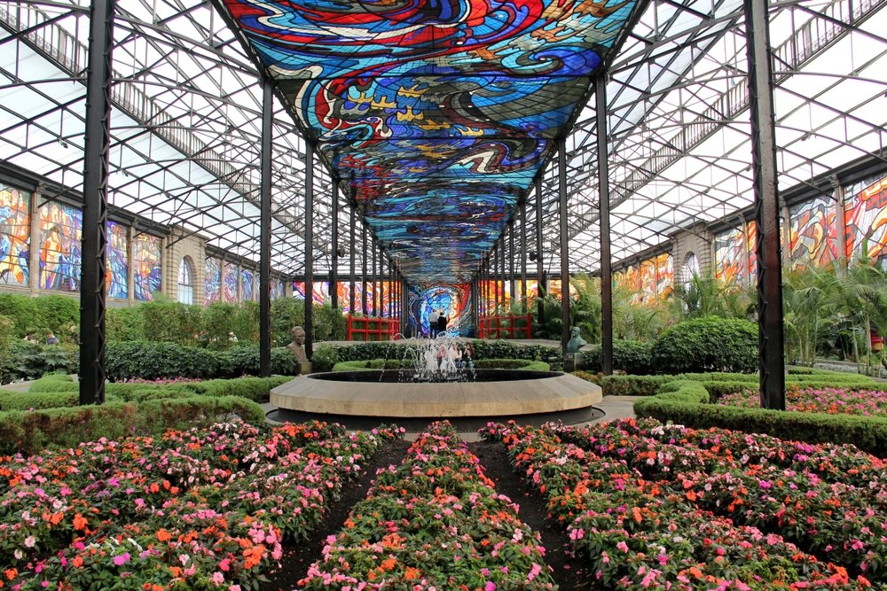 Un vitral impresionante y un jardín interior con especies de todo el mundo.